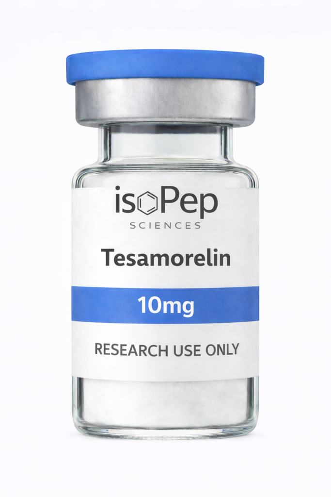 Tesamorelin (10mg) is a research-grade material supplied for laboratory and analytical applications.
